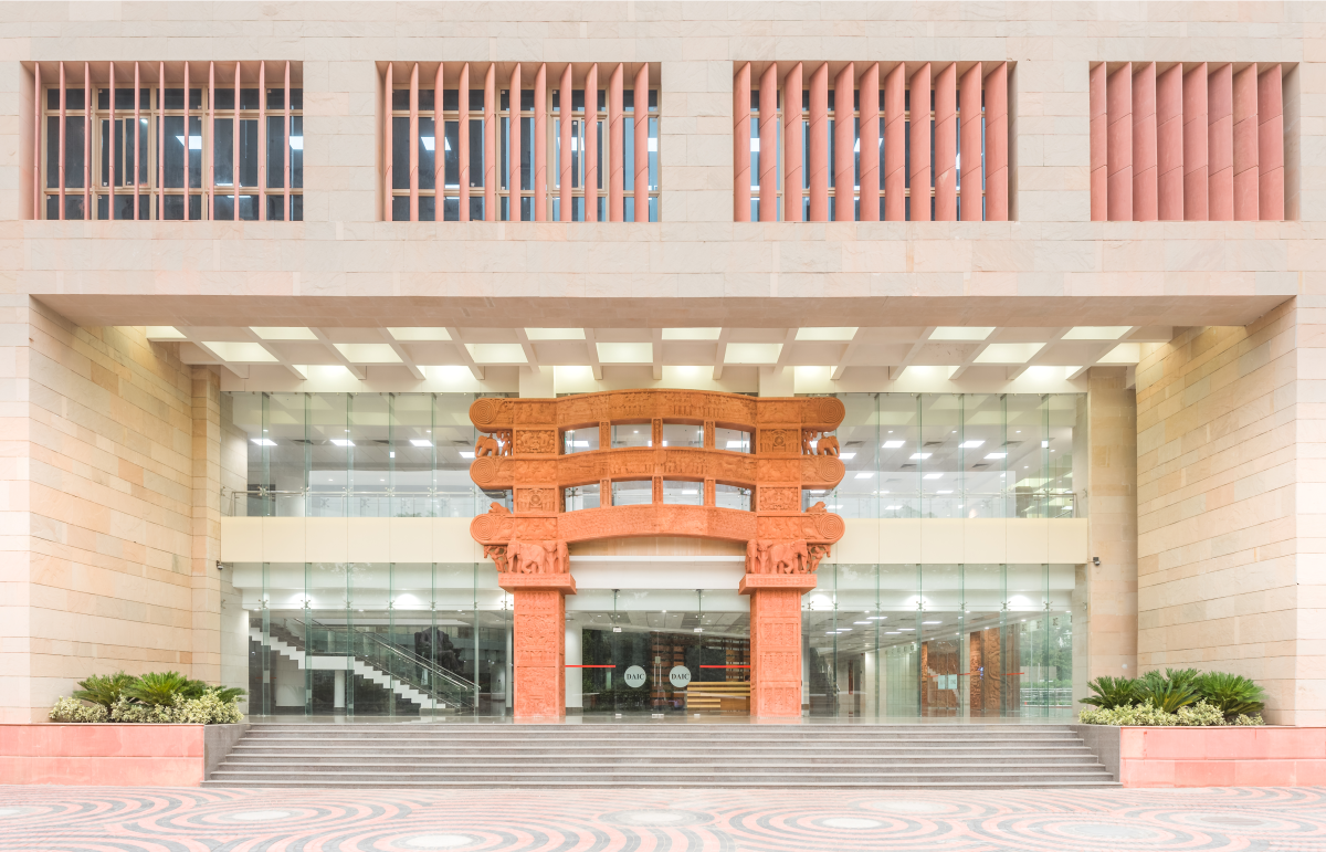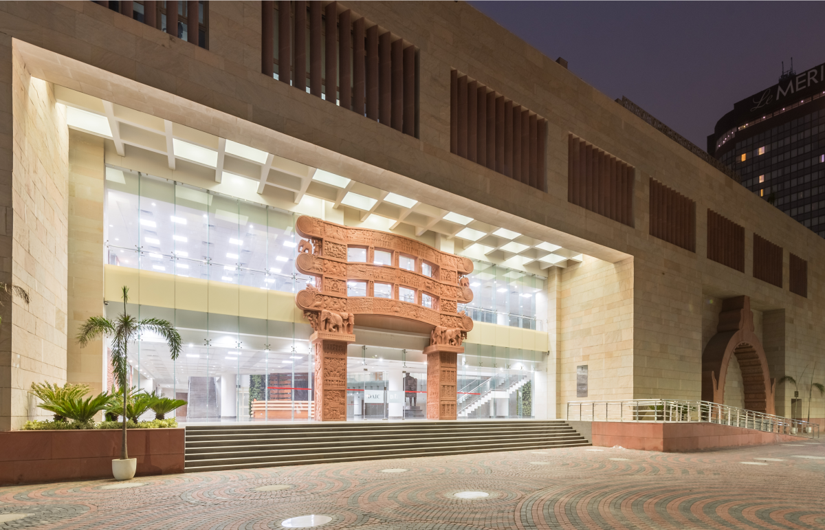 The project awarded by NBCC, comprised the design development, manufacturing and installation of two tornana gates, chaitya arches and architectural louvers spread across the entire facade of the DAIC building. The original Tornana Gate, at Sanchi Stupa was 3D scanned by the Odyssey team and the entire monument replicated using CNC milling and finished with hand carving to give it an authentic look. All the material was sourced from a single pit of the quarry and used for the project.