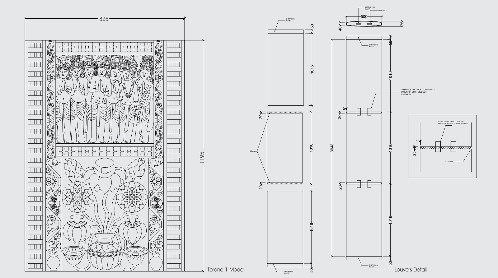 Inspired by The original Tornana Gate, at Sanchi Stupa was 3D scanned by the Odyssey team and the entire monument replicated using CNC milling and finished with hand carving to give it an authentic look.