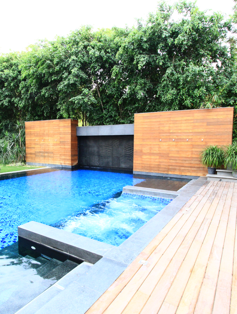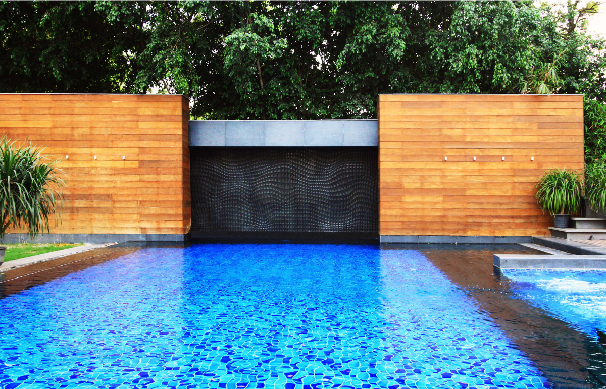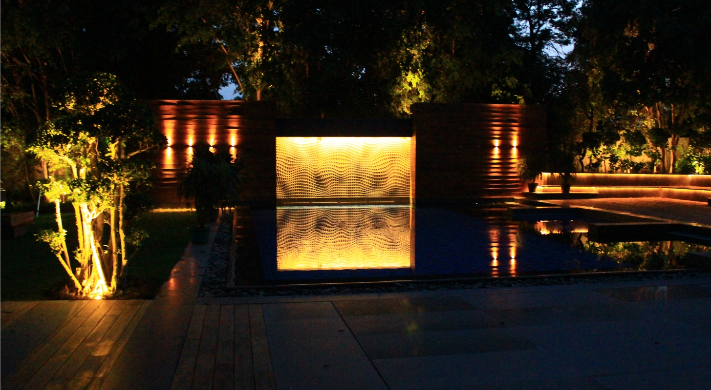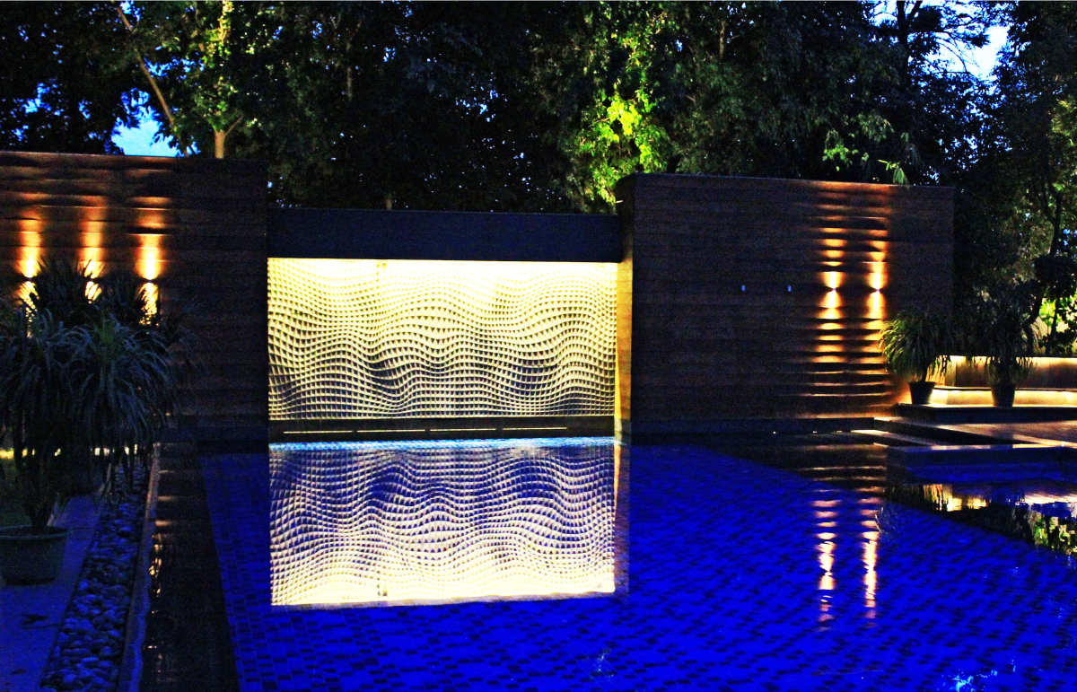 Kinetic # 11 Black Granite waterbody, giving a motion effect during day and at night to the swimming pool, were one of the work done at a private residence in New Delhi, India.