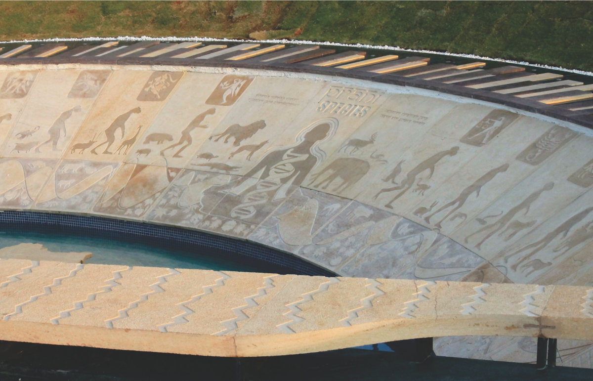 The majestic monument for the Bio-diversity Park, built on the Gachibowli-Mehdipatnam Road, has become a landmark in Hyderabad as an artistic expression of the great mystery of life on earth and its creation. Odyssey has erected a 32 feet high elliptical Bio-Diversity Pylon, depicting the evolution of species - starting from an atom, evolving to become molecules, proteins, various life forms and the intelligent human being.