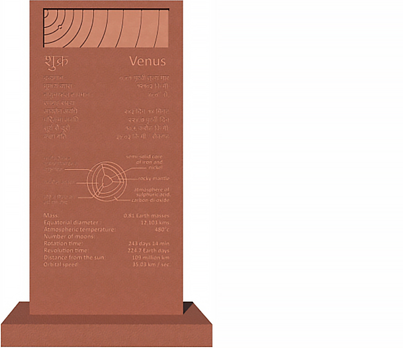 Additional plaques were designed, for noting the information about the planets in the solar system. The theme of the park was to explain the evolution of life and the universe, through carvings and intricate sculptures, and plaques were designed for the same. They were of size 1100mm X 2150mm.