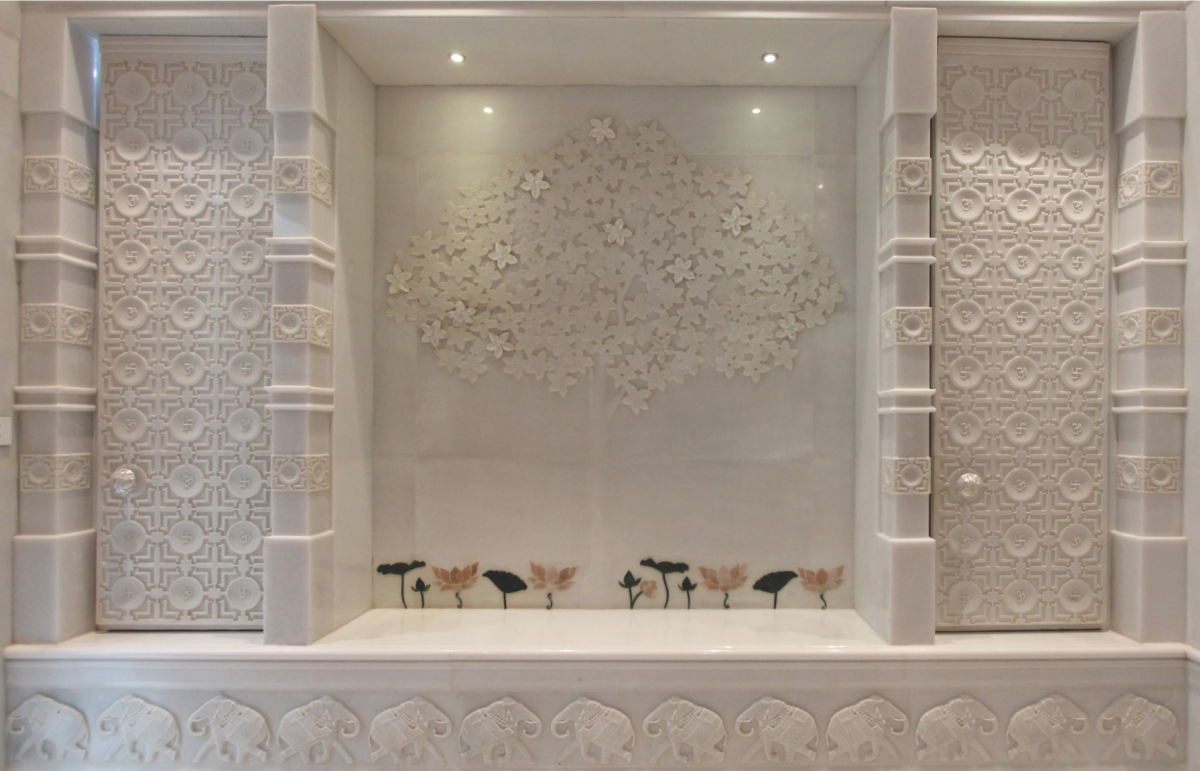 Inspired by the Mandala, a spiritual symbol representing the universe, and a contemporary take on Pichvai art, the mandir was conceived to be the central feature of a private residence in New Delhi.
